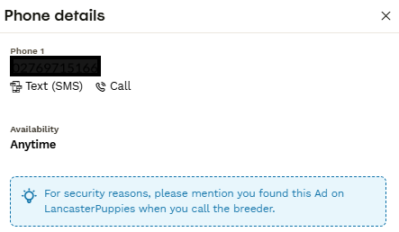 - This will display the seller’s phone number, their preferred contact method (call, text, or both), and their availability (day and time).